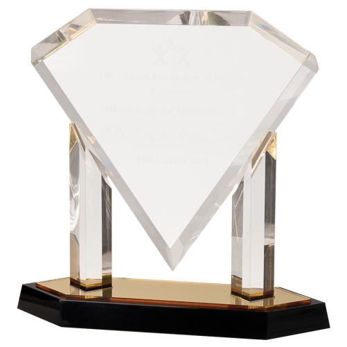 Acrylic Floating Diamonds feature clear acrylic posts mounted to a 1" thick mirrored acrylic base. Diamonds ship unattachedThis acrylic is great for all needs. Your custom logo can be added at no extra charge.