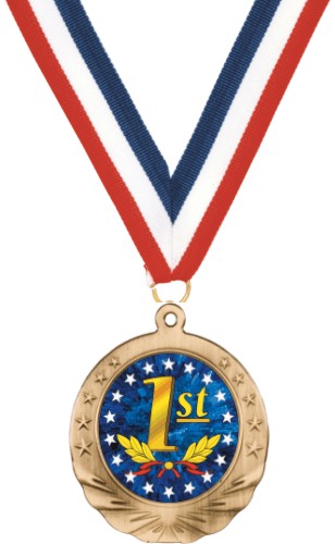 Gold Medal with Ribbon This Medal is available with a 2" insert. Your custom logo and engraving can be added at no extra charge. Free Engraving On All Awards